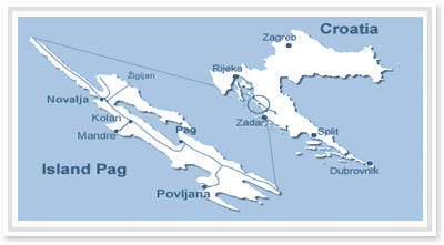 The island of Pag is the fifth largest island in the Adriatic Sea, but the long coastline of 302.47 km, makes it the most developed island in the Adriatic. On the south side of the island, there is the Pag bridge which is 340 meters long, connects to the mainland; to the city of Zadar. The island can be reached by ferry; Port Zigljen- Port Prizna on the north side. Best known speacialites of Island Pag are cheese and lamb which you will find on Menu's of many restaurants in Novalja.